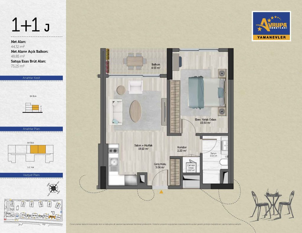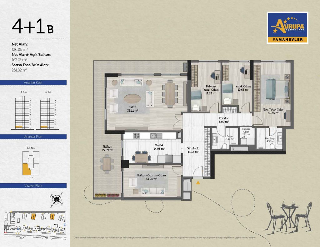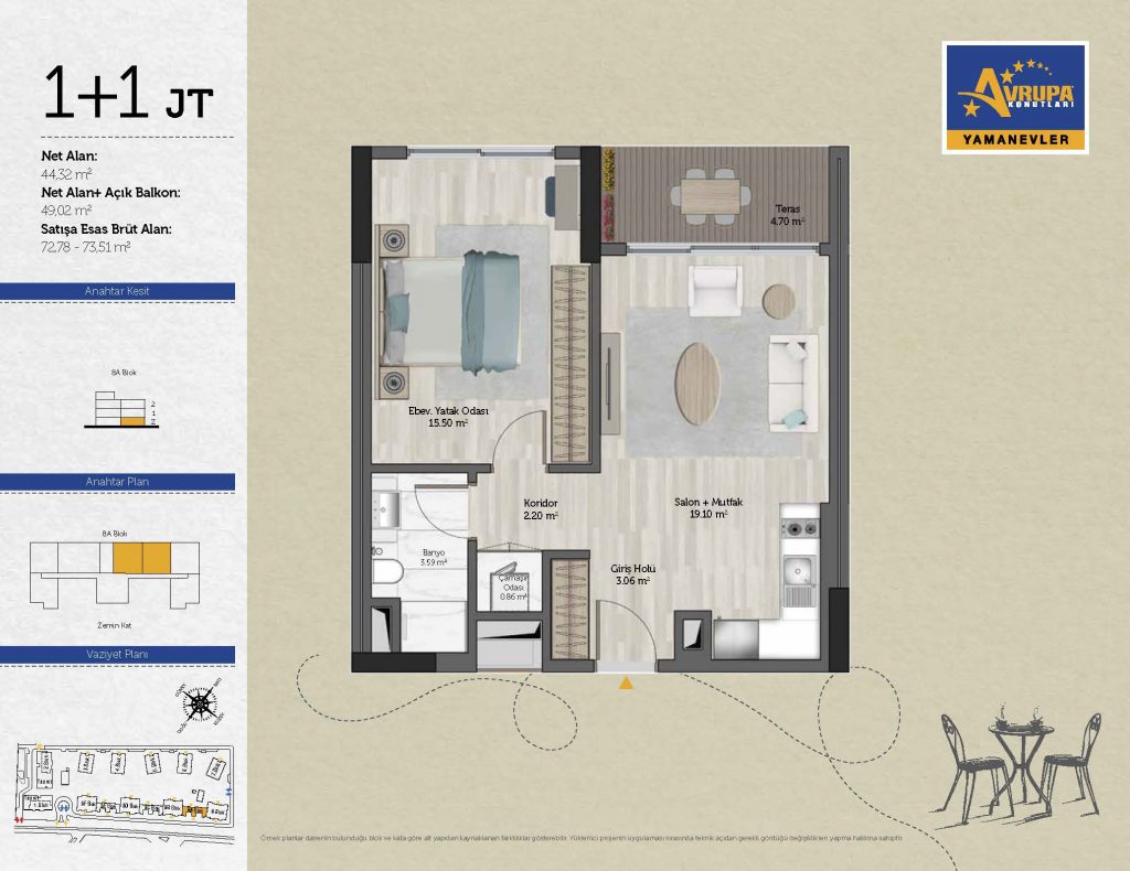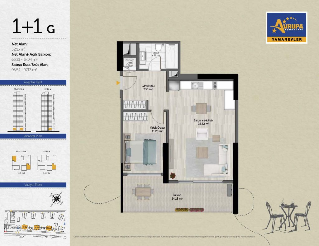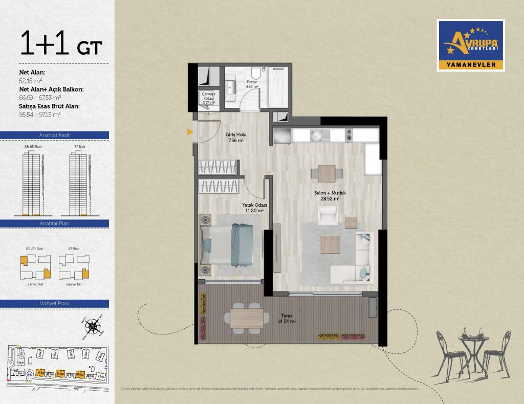 Abalpha brokerage offers 545 residences ranging from 1+1 to 4+1 with 51 different types in the 1st phase. With the privilege of Abalpha brokerage, you can choose the apartment type that suits your needs.