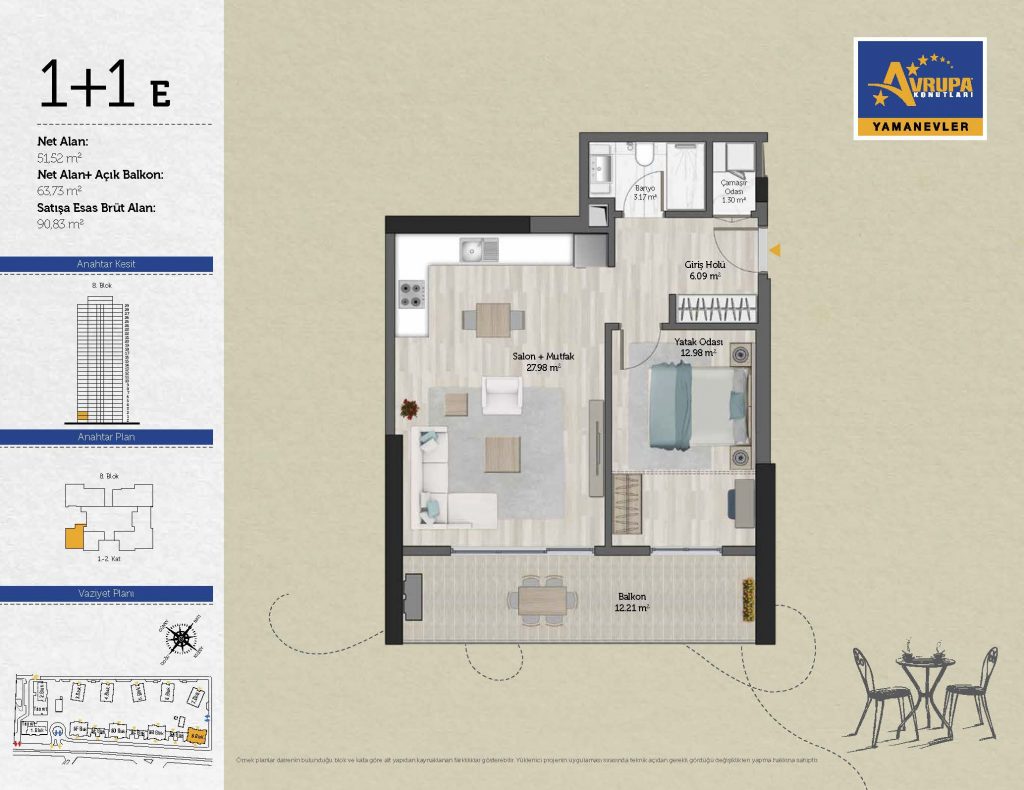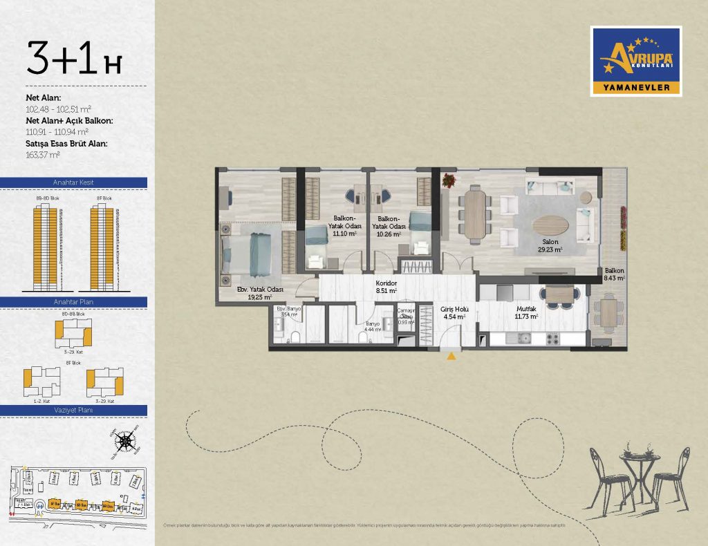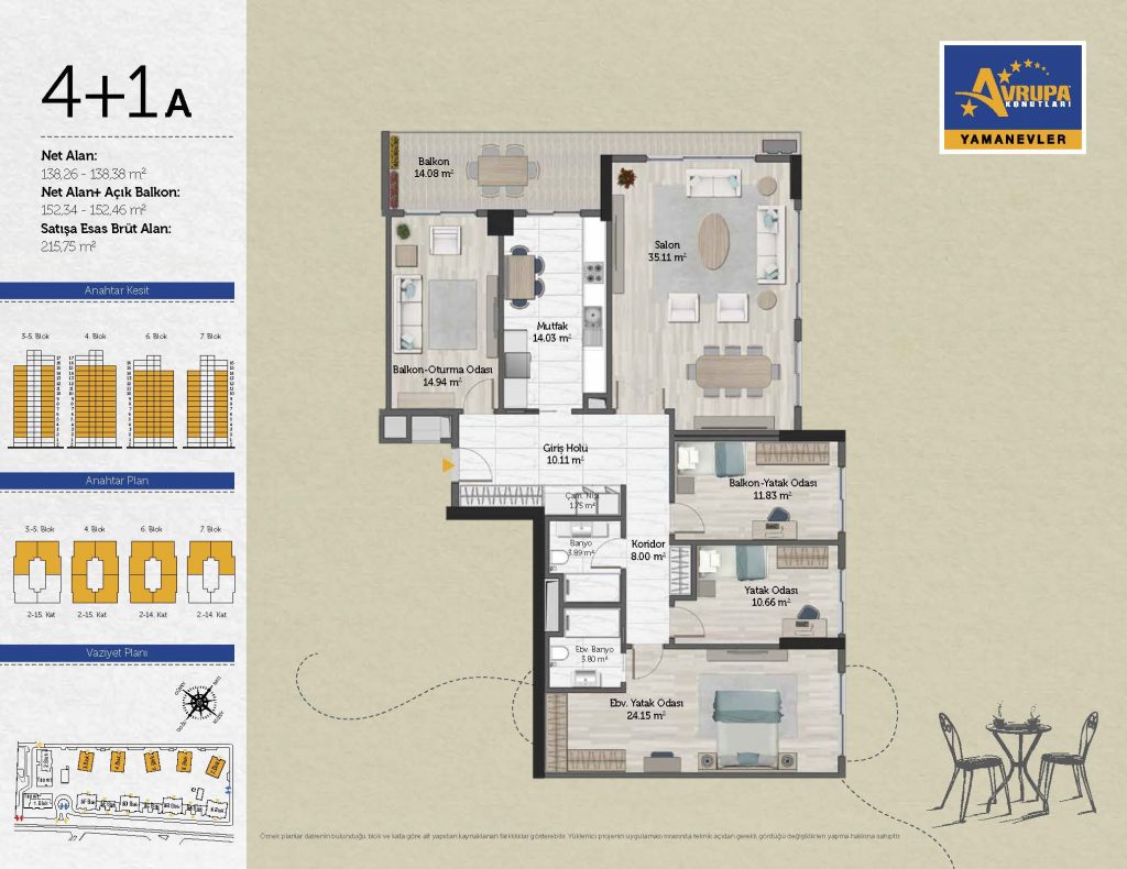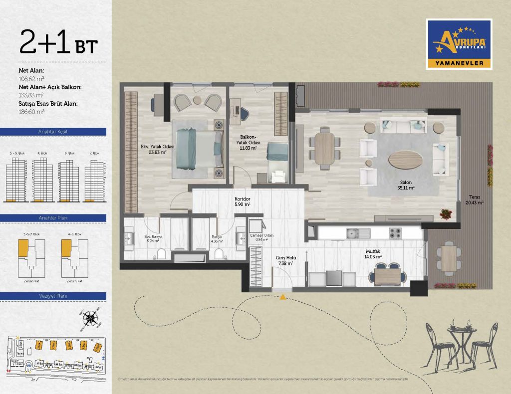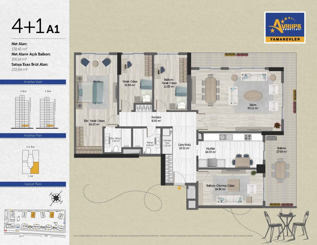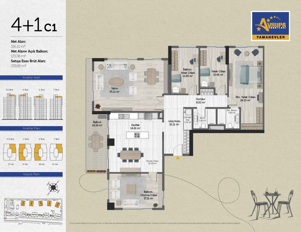 Abalpha brokerage offers 545 residences ranging from 1+1 to 4+1 with 51 different types in the 1st phase. With the privilege of Abalpha brokerage, you can choose the apartment type that suits your needs.